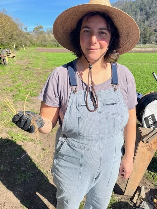 Farmer Sarah with a strawberry start.